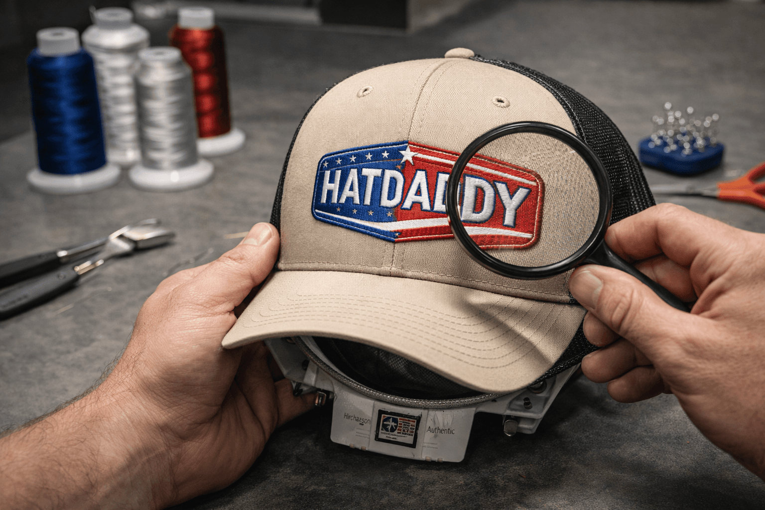 Your hat is embroidered right here in Texas using top of the line embroidery machines and thread.